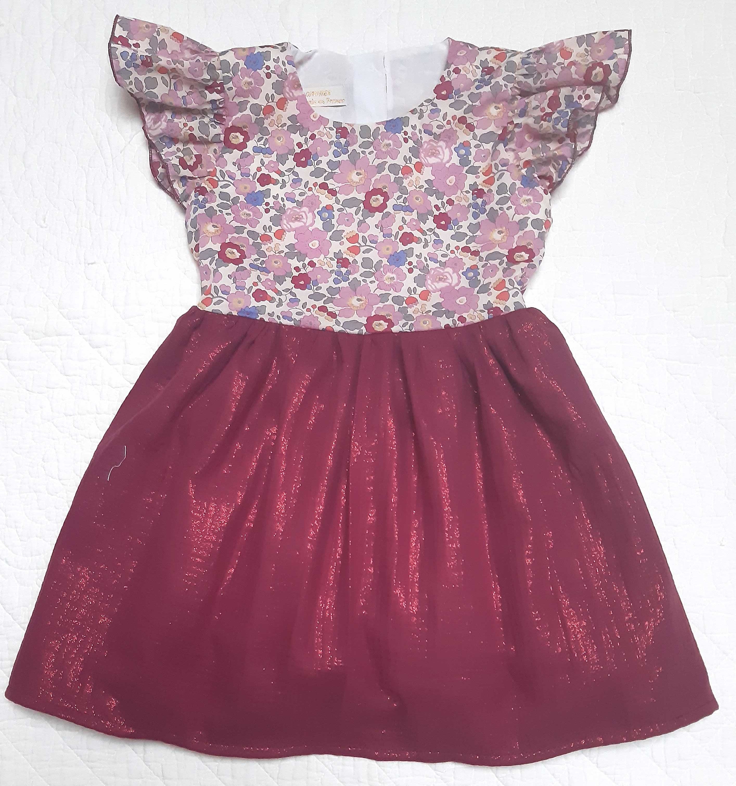 robe Amélie bi-matière liberty betsy Cuberdon jupe double gaze irisée framboise 4 ans